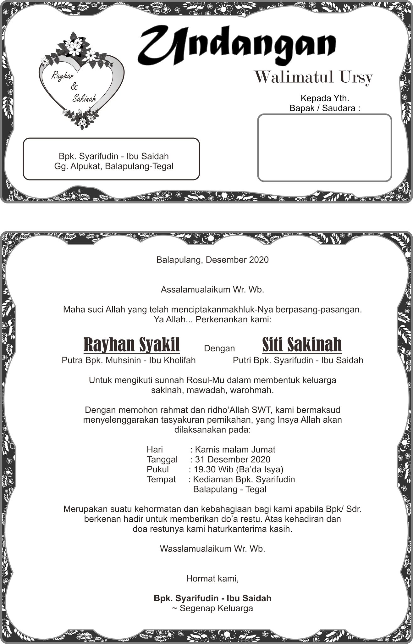Undangan Walimatul Ursy Siti Sakinah